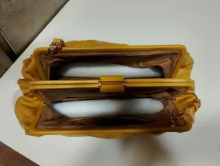 Bolso de fiesta dorado, lleva la correa para colgar en el hombro y una pequeña para sujetarlo en la muñeca. Tienes una boda??? Estarás guapísima con este bolso!!. Ideal para esta Noche vieja!!! Sin usar, lleva la etiqueta.