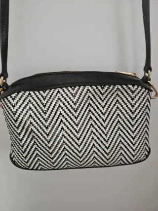 Bolso bandolera de Mango, con un diseño entrelazado muy original, Me lo regalaron y nunca lo use.... - MEDIDAS 30 x 19 - Material: Piel sintética. - Color: Negro. - Estilo: Tejido. - Cierre: Cremallera.