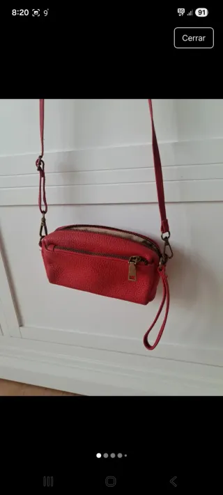 Cerrado con cremallera. Imitación piel, sintético. Bolsillo interior, medidas en las fotos. Nuevo sin uso, aunque se quitó etiqueta. Correa no regulable, fija. NO HAGO ENVIOS.