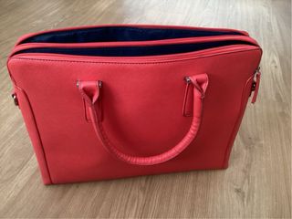 Bolso de mano y hombro con un diseño elegante, ideal para llevar tu ordenador portátil o para el día a día en la oficina. Su vibrante color rojo le da un toque moderno. - Asa de mano reforzada. - Correa de hombro ajustable y extraíble. - Cierre superior con cremallera. - Dos compartimentos. - Bolsillos interiores. - 40 cm de ancho, 30 cm de alto, 9 cm de fondo.
