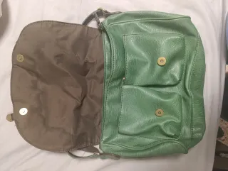Bolso de la marca Misako en color verde. - Diseño con solapa. - Dos bolsillos frontales con cierre de botón. - Interior forrado.