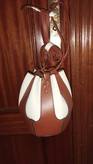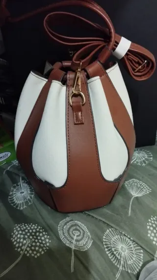 Bonito bolso con un diseño único en forma de balón. - Combinación de colores marrón y blanco. - Asa corta y correa larga ajustable.