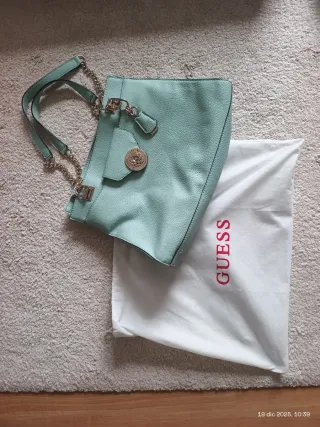 Elegante bolso de la marca Guess original en un bonito color teal. Perfecto para complementar tu estilo. - Diseño con cadena. - Detalle de logo metálico.