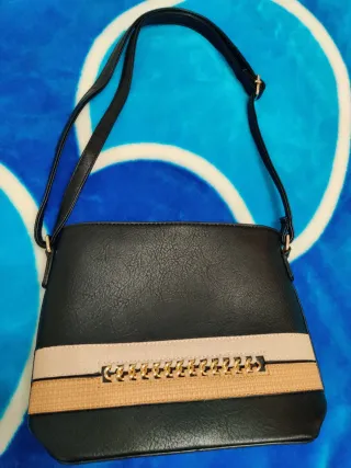 Bolso mediano con un diseño elegante y práctico. - Asa corta para llevar en mano. - Correa larga ajustable para llevar cruzado o al hombro. - Detalle de textura en el frontal. - Ribetes y asas en contraste.
