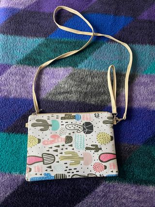 Bolso con un divertido estampado de cactus en varios colores. Incluye una correa para llevarlo al hombro y otra para llevarlo en la mano. - Diseño original de cactus. - Correas para diferentes usos.