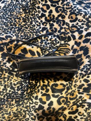 Bolso bandolera con un diseño estampado. Tono sepia y negro. - Cierre con hebilla. - Ribete en contraste. - 3 apartados uno de ellos con 2 bolsillos grandes. - correa ajustable. - Amplio y ligero. - 28 cm largo x 17 cm alto x 10 cm fondo - Muy poco uso.