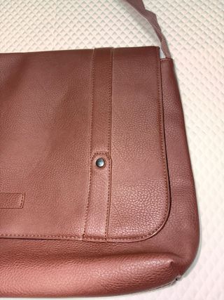 Precioso bolso bandolera de color marrón, en muy buen estado. Tiene alguna zona un poco desgastada por el uso. - Asa larga regulable para llevarlo al hombro o cruzado. - Bolsillo frontal con solapa. - Compartimento principal con cierre de cremallera. - Un bolsillo interior con cremallera. - Un bolsillo en la parte trasera con cremallera.