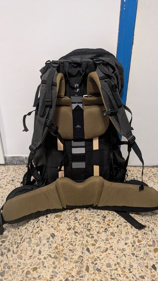 Mochila de trekking para hombre con una capacidad de 70+10 litros en color negro. - Compartimento principal espacioso. - Múltiples bolsillos y cintas de sujeción. - Espalda y tirantes acolchados para mayor comodidad.