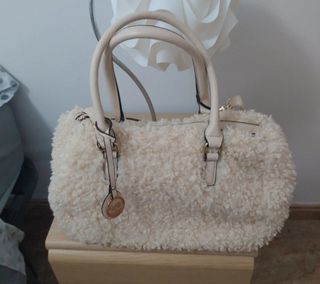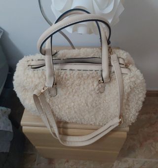 Bolso tanto para colgar con asas como con correa larga. Efecto borreguito. Con cremallera exterior e interior así como bolsillos internos. En perfecto estado. Sin roturas ni desgaste