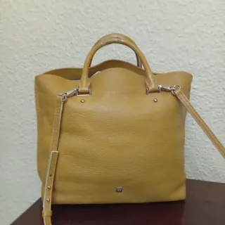 Bolso de piel en color mostaza de Purificación García. Un diseño elegante y versátil.con bandolera con preciosos mosquetones dorados está nuevo , asas base en perfecto estado, interior forrado con bolsillo ribeteado en piel con cremallera grabada con la marca. Y dos bolsillos adicionales ribeteados en piel . Para móvil y llaves ..es bonito un color mostaza precioso está prácticamente nuevo. Mide 38 de ancho . 27 cm de alto . 13 cm fondo .gran capacidad - Material: Piel. - Color: Mostaza.