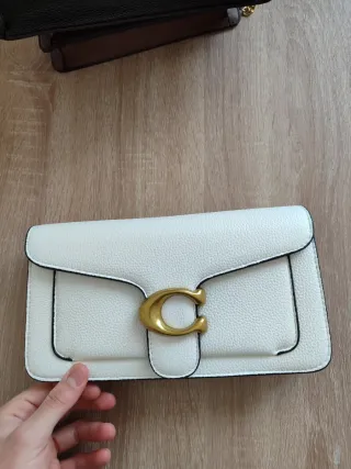 Elegante bolso de la marca Coach en color blanco nuevo a estrenar. Presenta un distintivo cierre en forma de C con acabado dorado. - Diseño con solapa. - Acabado texturizado.