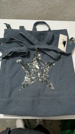 Bolso azul con estrella plateada