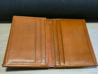 Cartera de cuero para hombre, compacta y elegante. - Material: Cuero genuino. - Diseño minimalista. 6 compartimentos para tarjetas, compartimento para billetes y 2 compartimentos mas trasparente para documentos. No se ha usado nunca.
