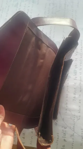 Muy buen estado. Tamaño grande. Interior amplio. Dos bolsillos exteriores, uno interior. Cierre de cremallera y broche. Confeccionado en Piel Auténtica. Tiene manchas visibles de boli en el interior y algunas en el exterior no muy llamativas. Se le puede dar muchísimo uso aún ya que es preciso, ligero y práctico. Una joya vintage. Herrajes plateados. Envío rápido y seguro.