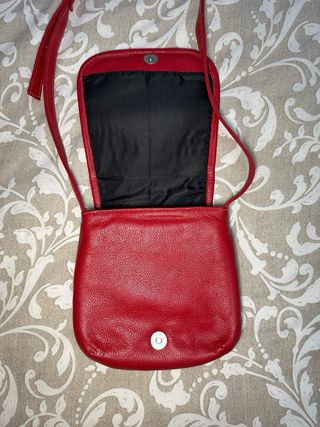 Bolso de piel auténtica en color rojo. Un accesorio elegante y versátil. - Material: 100% piel. - Diseño texturizado en la solapa.