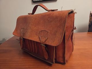 Maletín de piel con un diseño clásico y funcional. Ideal para llevar tus pertenencias con estilo. - Material: Piel genuina. - Color: Marrón. - Correa ajustable para llevar al hombro.