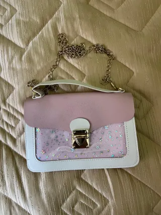 Bolso rosa y blanco con cadena