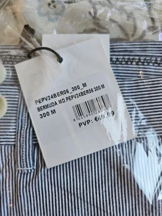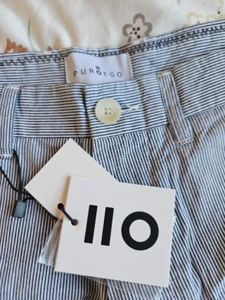 Pantalón corto de la marca Puro Ego con un diseño de rayas. Sin sacar de su bolsa. Precio original 50 euros. - Talla M - Diseño de rayas en blanco y azules.
