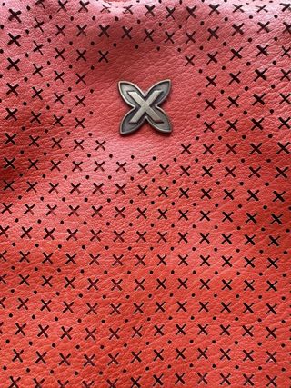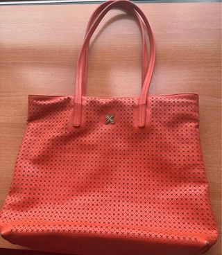 Bolso de la marca Munich en llamativo color naranja. Su diseño perforado le da un toque moderno y ligero. - Asa doble para llevar al hombro. - Detalle metálico con el logo de la marca en la parte frontal. - Moderno, estiloso y cómodo de llevar. - Está prácticamente nuevo, en su bolsa original, aunque sin etiquetas.