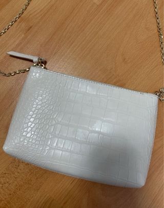 Bolso de mano de Mango con un elegante efecto piel de cocodrilo. - Color blanco. - Cadena dorada para llevar al hombro o cruzado. - Medidas: 23 x 16 NO RESERVO
