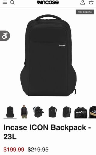 Mochila Incase ICON de 23 litros en color negro. Diseño moderno y funcional. - Compartimento principal espacioso. - Bolsillo frontal con organizador. - Correas de hombro acolchadas.