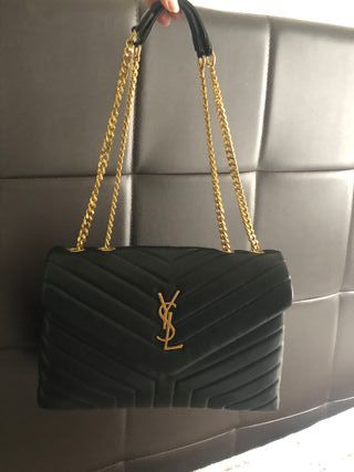 bolso YSL NEGRO - Diseño acolchado. - Cadena dorada. - Logo frontal. - Asa de cadena. - Incluye caja.