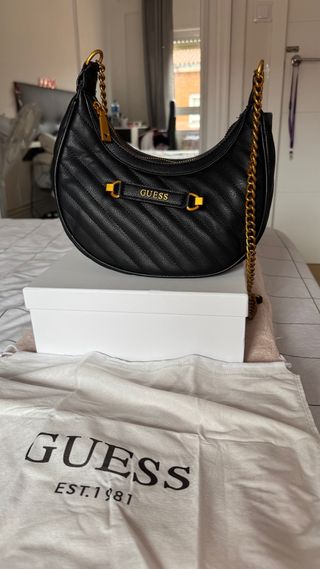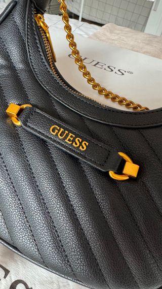 Bolso de la marca Guess con un diseño acolchado y detalles en dorado. - Acabado acolchado. - Cadena dorada. - Logo de Guess en la parte frontal.