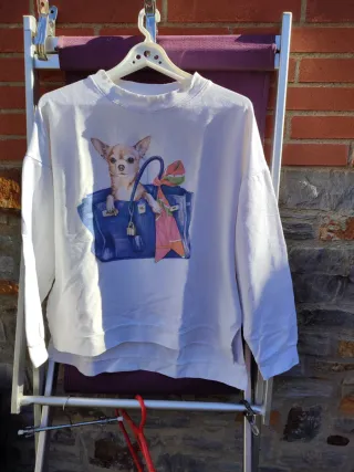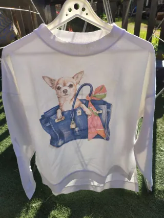 Jersey de algodón con un divertido estampado. - Diseño con un perro chihuahua dentro de un bolso azul. - Detalle de pañuelo colorido en el bolso. - Manga larga.