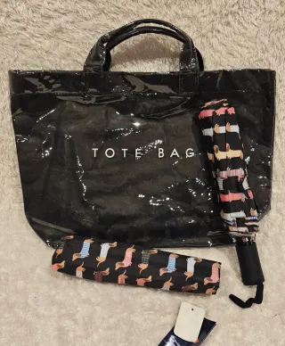 Set de bolsa tote y paraguas plegable con estampado de perros salchicha. - Bolsa tote con acabado brillante. - Paraguas plegable con funda a jueg, automatico y antiviento. #dog #perrosalchicha #teckel #paraguas #umbrella