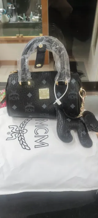 Bolso de mano con estampado clásico de la marca MCM. Incluye un adorable llavero con forma de perro. - Diseño con monograma. - Placa frontal con logo. - Llavero a juego.