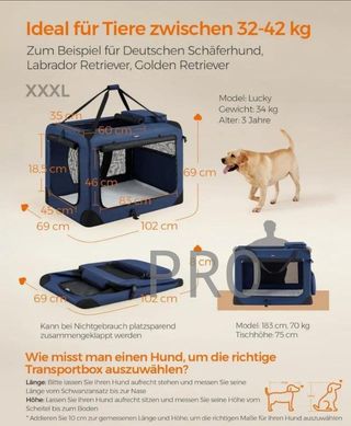Bolsa para Perros Tela Oxford Malla Transpirable Portátil Transportable Marco de Metal con Asas Bolsillos 102 x 69 x 69 cm Azul Oscuro PDC10Z