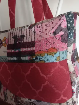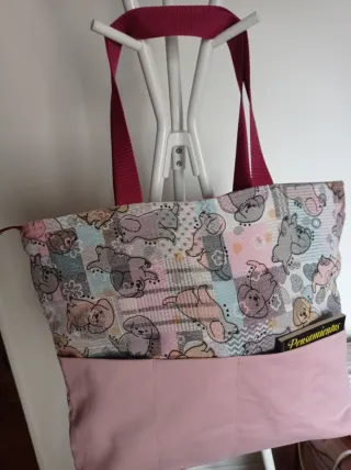 Bolso de tela con un diseño muy original y divertido, con estampados de perros y huesos. - Tejido resistente y duradero. - Combinación de colores vibrantes. - Asas cómodas para llevar al hombro.