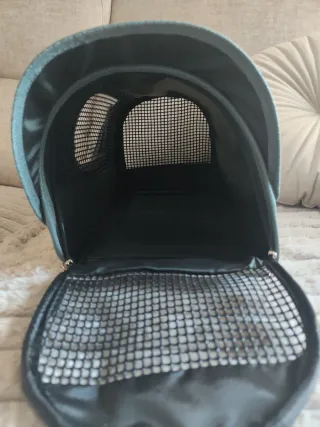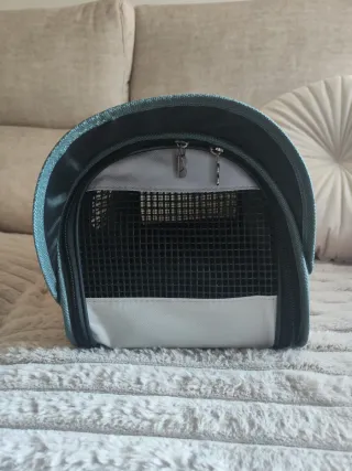 Maleta transportín para mascotas pequeñas. - Diseño moderno y funcional. - Malla transpirable para ventilación. - Cierre de cremallera. - Asa para facilitar el transporte.