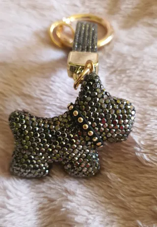 Adorno para llaves o bolso con forma de perro, cubierto de brillantes. - Diseño de perro. - Detalles de brillantes. - Accesorio para llavero.