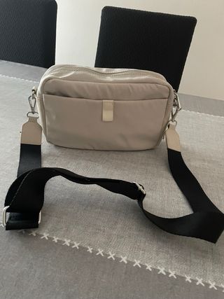 Bandolera de la marca Parfois en color beige. Un accesorio práctico y elegante. Está como nueva. Es impermeable.