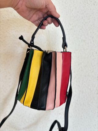 Bolso pequeño de Parfois con un diseño llamativo y moderno. - Diseño de rayas verticales. - Cierre de cordón. - Asa corta y correa larga ajustable.
