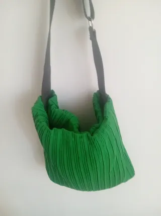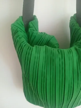 Bolso de mano con un diseño moderno y original. - Color verde vibrante. - Acabado plisado. - Correa ajustable.