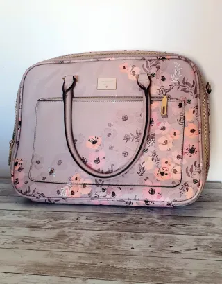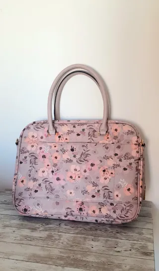 Maletín con un bonito estampado floral, ideal para portátiles de 13 o 14 pulgadas. Presenta un diseño elegante y práctico. - Cierre principal con cremallera. - Bolsillo frontal con cremallera. - Asa de mano. - Correa de hombro desmontable. -Varios bolsillos y separadores interiores. Casi ni se usó. Es mucho más bonito al natural que en las fotos.