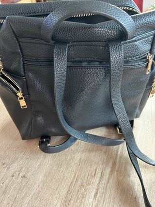 Mochila de viaje Parfois en color negro. Práctica y espaciosa. Asa de mano y correa ajustable para hombro. Bolsillo frontal con cremallera. En buen estado, las asas un poco desgastadas (ver fotos)