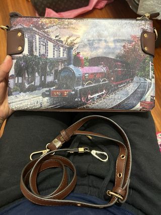 Precioso bolso bandolera con estampado de un tren. Ideal para un look casual y elegante. - Diseño único y llamativo. - Asa larga regulable y desmontable. - Cierre de cremallera. - Perfecto estado.