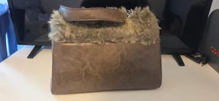 Elegante bolso de mano en color granate, con un toque moderno gracias a su asa de pelo. Con una textura de borreguito. Usado una vez, está en perfecto estado. Medidas 23 de ancho y 19 de alto - Textura principal del bolso tipo bouclé. - Asa superior de pelo sintético. - Cierre metálico frontal. - Correa de hombro ajustable.