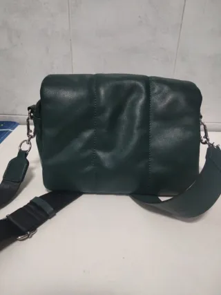 Bolso de mano y bandolera en color verde militar. Cuenta con dos asas cortas y una correa larga ajustable. - Material resistente. - Cierre superior. - Bolsillo interior. Entrega solo Bilbao. (pago contra entrega)