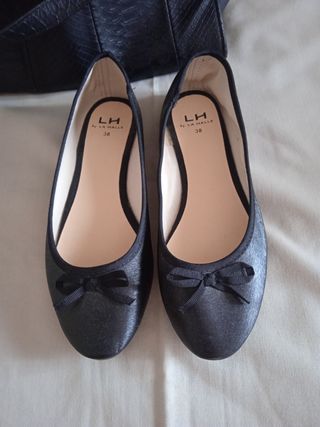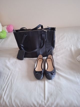 bolso negro con varios departamentos prácticamente Nuevo 1solo uso. bailarinas número 38 de 1,puesta ya q se usó el mismo día.
