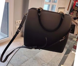 Bolso negro de PARFOIS NUEVO. 34cm × 15cm x 25cm (sin contar el asa) Precio original 47,95. Para todas las ocasiones, para ir ELEGANTE O INFORMAL a la calle con posibilidad de llevar el PORTÁTIL contigo (13") Con pequeño MONEDERO EXTRA que va por fuera y se puede quitar y poner. Ofrece 3 ESPACIOS para organizar mejor tus cosas (uno de ellos con cremallera). Material imitación a piel. Trae una CORREA LARGA (está sin abrir) que se puede poner y quitar para llevarlo de bandolera o al hombro. SIN ESTRENAR Tiene 4 "patitas" metálicas para protegerlo del suelo.