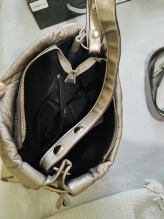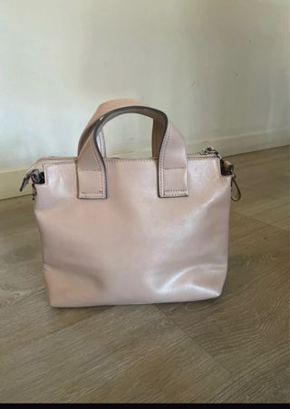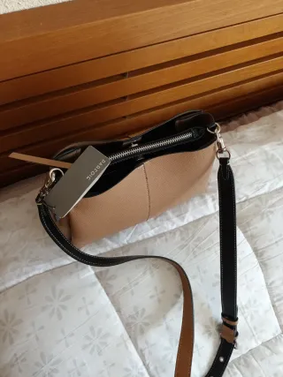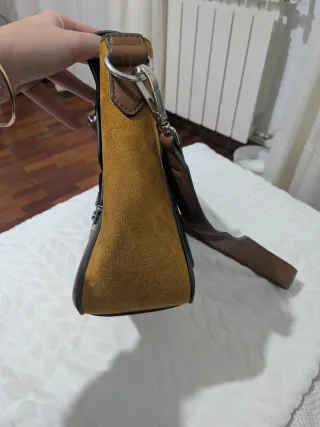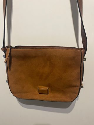 Bolso de mano y hombro de la marca Parfois. - Material con acabado ante. - Cierre de cremallera. - Asa de mano y correa ajustable para hombro.el bolso está en perfecto estado salvo la correa larga que en un punto se está despegando ver última foto
