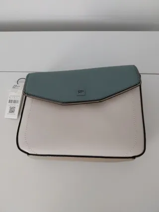 Bolso a estrenar, nuevo con etiqueta, de Parfois. Colores: crema, marrón topo y verde azulado. Medidas: 22x18x7cm. - Bandolera. - Cierre de solapa, con detalle de logo. Envío / entrego en mano en Madrid