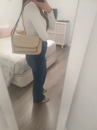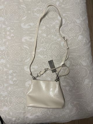 Bolso de la marca Parfois en color crema. súper cómodo y espacioso - Diseño acolchado - Correa ajustable - Cierre de cremallera