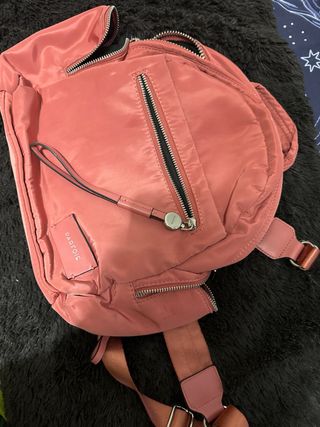 Mochila de la marca Parfois en color rosa. Diseño moderno y práctico. - Compartimento principal con cremallera. - Bolsillo frontal con cremallera. - Asa de mano y correas ajustables. - Detalle de logo en la parte frontal.