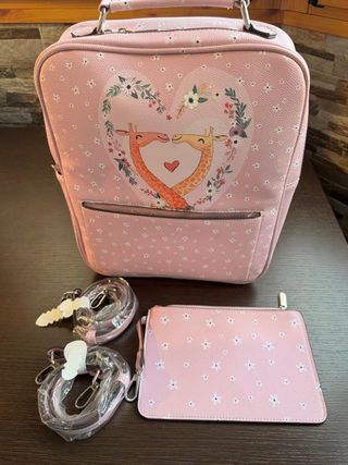Conjunto de mochila y neceser de Parfois, con un adorable diseño. Sin usar. Cierre cremallera. Entrega en mano. Pago efectivo.
