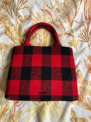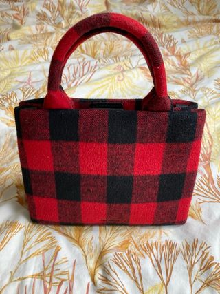 Bolso de mano con un diseño a cuadros en rojo y negro. Tiene asas cómodas para llevarlo. - Diseño a cuadros. - Asas de mano. - accesorios para colocar lateralmente